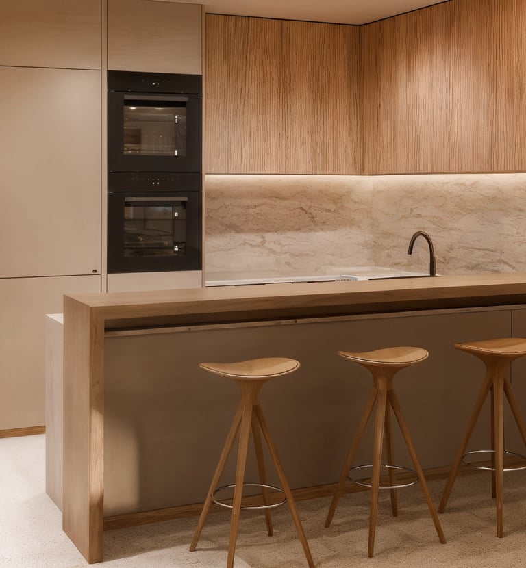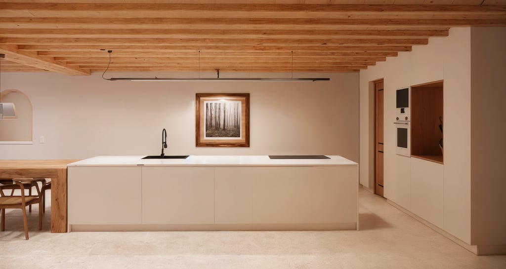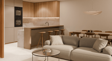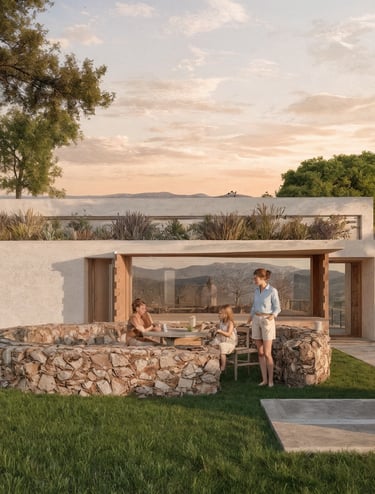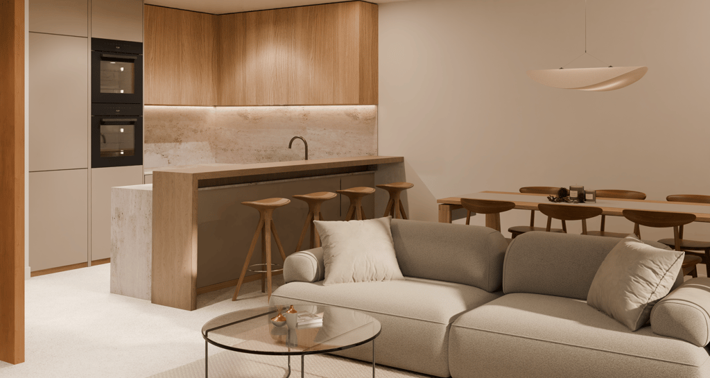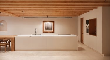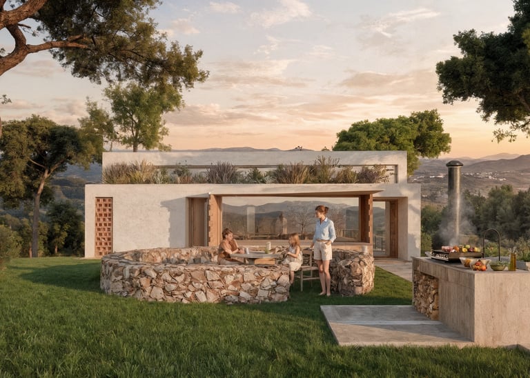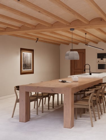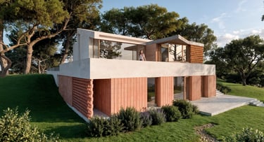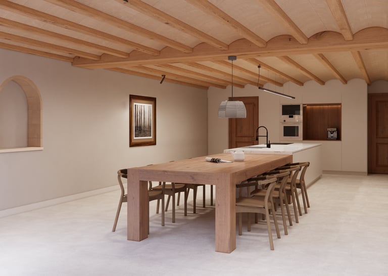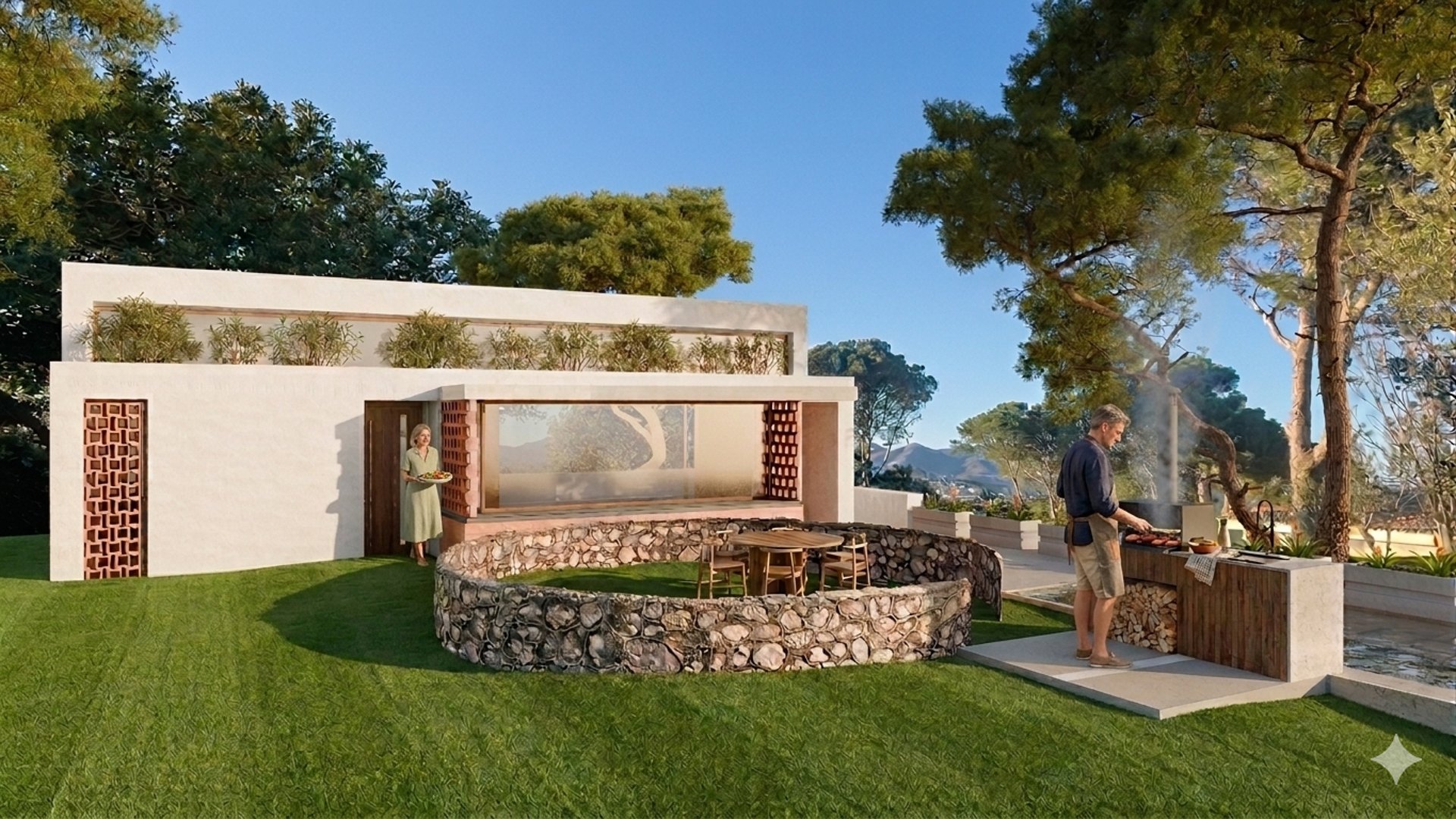 Generación de imágenes fotorrealistas de interior y exterior de un chalet en la costa Brava. Diseño de interiores a partir de planos y distribuciones
